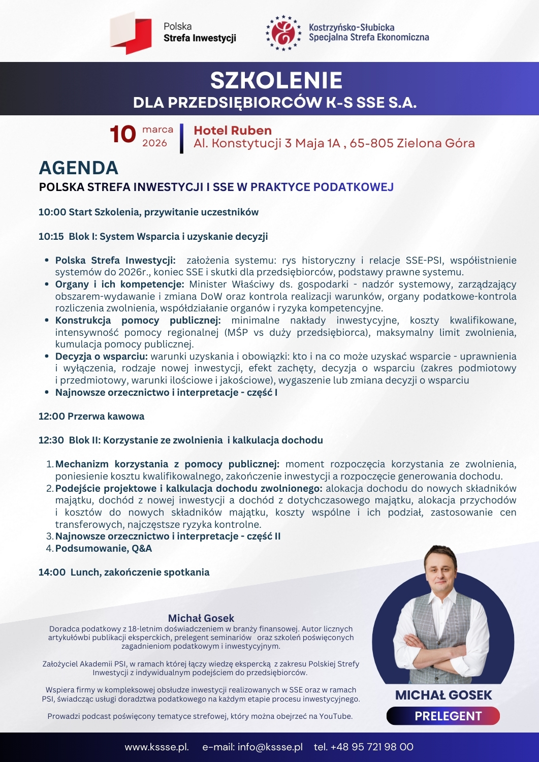 Szkolenie dla Przedsiębiorców K-S SSE S.A./ 10.03.2026 r., Zielona Góra