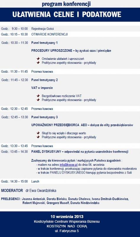 W ramach konferencji  „UŁATWIENIA CELNE I PODATKOWE